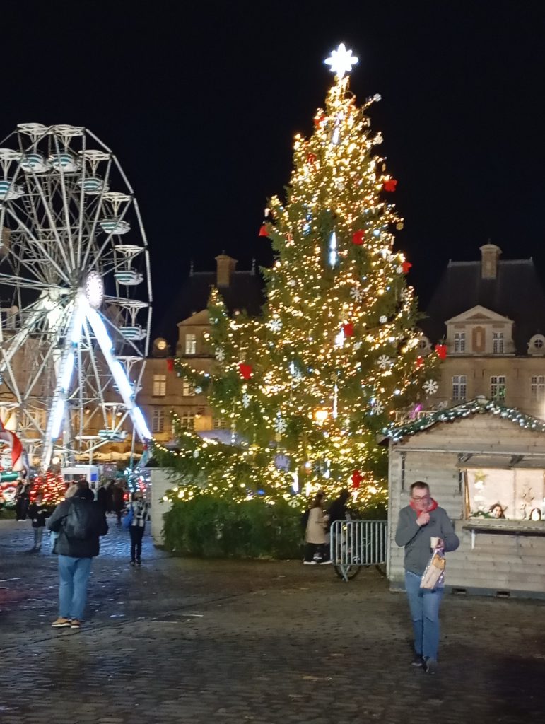Gestern wurde der Weihnachtsmarkt 2025 in Charleville-Mézières auf dem Place Ducale durch den Bürgermeister Boris Ravignon eröffnet. 90 x 120 Meter misst der Place Ducale, und um es einfach auszudrücken: Das ist eine Menge Platz und da passt schon einiges drauf. Dabei sprechen die Einheimischen noch immer von einem kleinen Weihnachtsmarkt, was ich nicht ganz teilen kann. Mit Riesenrad, Eislaufbahn, zwei Kinderkarussellen, einer Märchenstadt und geschätzt 50 Verkaufsständen ist dieser Markt für eine Stadt mit 40.000 Einwohnern nicht bescheiden, als klein zu bezeichnen.