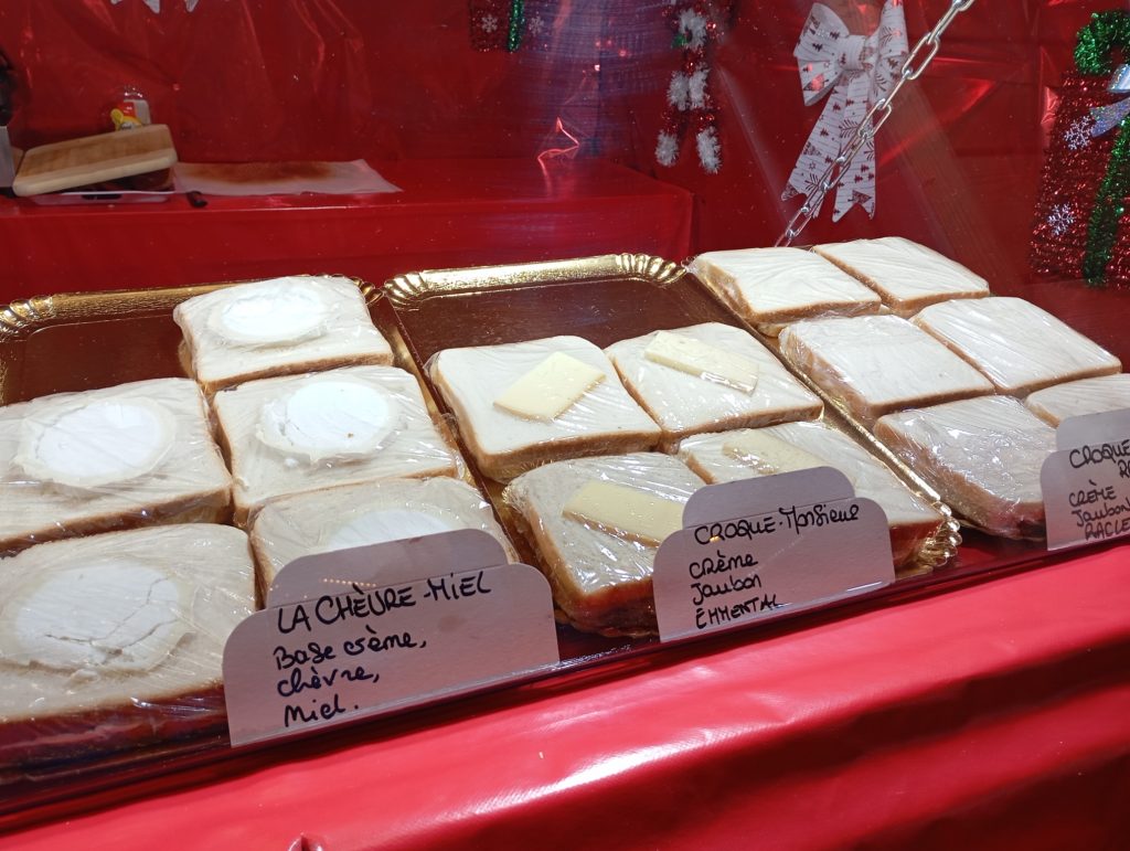 Croque-Varianten mit Ziegenkäse und Honig, oder die Standardausführung mit weicher Butter, Schinken und Emmentaler