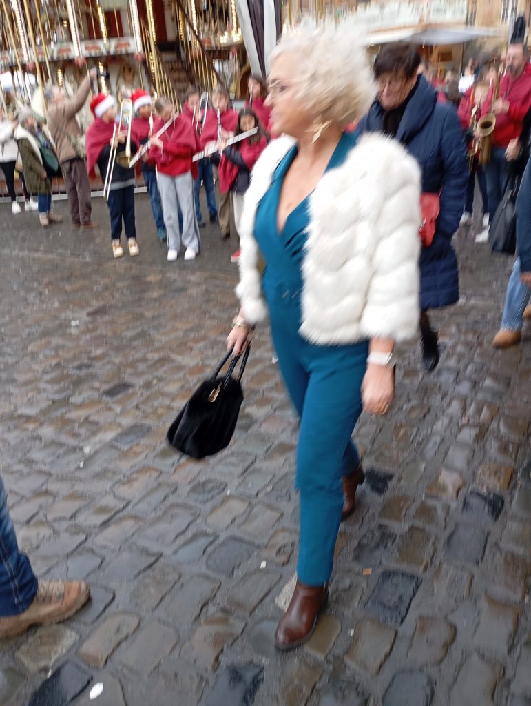 Sparsame Französin, die noch die Sommermode 2025 bei 7 °C zu den Klängen der Fanfaren du Collège Eva Thomé d’Attigny aufträgt